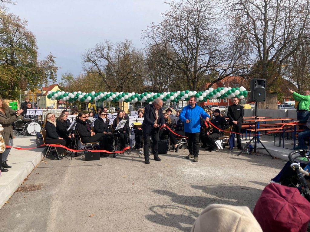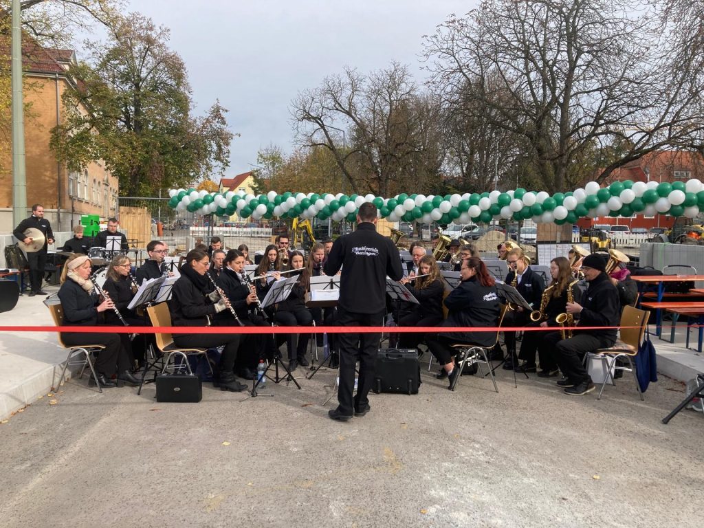 Das Blasorchester des Musikverein Betzingens unter der Leitung von Joachim Kromer begleitete die Einweihung der neuen Brücke musikalisch. Beginnend mit dem Fliegermarsch und Abba Gold sorgten sie für einen feierlichen Rahmen der Ansprachen durch Oberbürgermeister Thomas Keck und Bezirksbürgermeister Friedemann Rupp, die auch das rote Band durchtrennten. Besonders imposant waren dabei die farbigen Rauchpatronen auf beiden Seiten der Brücke, die in diesem Moment gezündet wurden. Auch nach dem offiziellen Teil ging es mit einem abwechslungsreichen Programm aus volkstümlichen und modernen Stücken weiter.